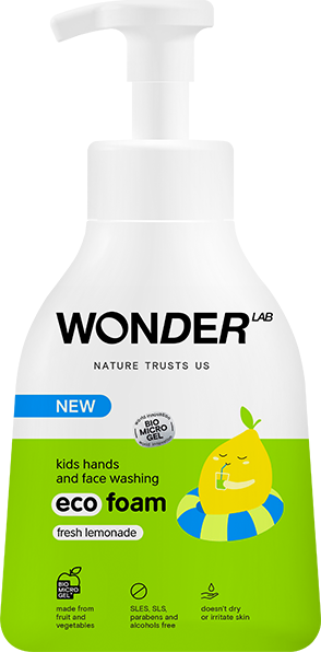 Liquid eco soap in foam format WONDER LAB for hands and face washing has pleasant aroma of fresh lemonade. It is perfect for kids of all ages.