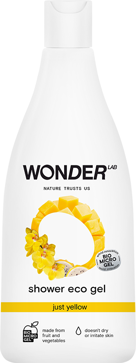 Just a few drops of WONDER LAB Just Yellow Eco shower gel with wonderful sweet aroma of tropical fruit reminds you of sunshine and seaside? Gently and carefully cleanses the skin, maintaining the pH balance. Doesn’t dry or irritate skin. Leaves the skin moisturized, soft, and silky. Gel easily foams, completely washable with water. It is suitable for everyday use and for all skin types.
